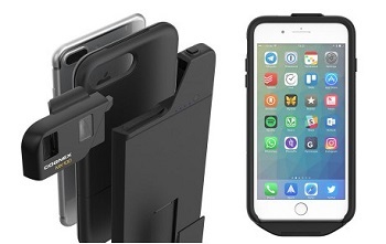MX-100 — это аксессуар для мобильного устройства, присоединяемый к смартфону вместе с чехлом OtterBox uniVERSE (каждый продается отдельно). Благодаря предусмотренному разъему OtterBox и модульной конструкции MX-100 обеспечивается возможность расширения посредством установки других дополнительных модулей, например подставки для устройства или считывателя кредитных карт.